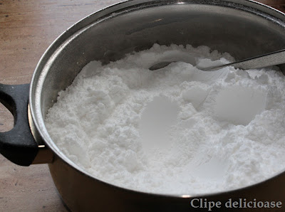RăspundețiȘtergereAm facut si eu, saru'mana pentru rețetă, a iesit grozav. Am facut doua ture ca am avut de acoperit un tort tip păpușă, dar am înlocuit de fiecare data apa cu zeama de lămâie. A doua oara am pus si esenta de lamaie si un pic de amidon si a placut tuturor. Toti au mancat-o,nimeni nu a lasat in farfurie.